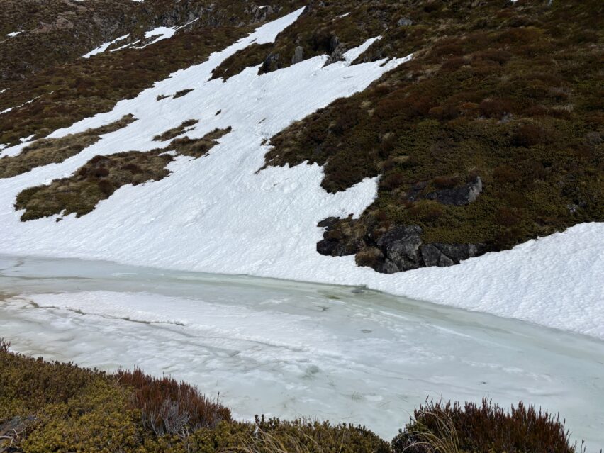天候次第で、さらに上にあるニュラーハットまで行こうと思いましたが、膝くらいまでの残雪があり断念しました。