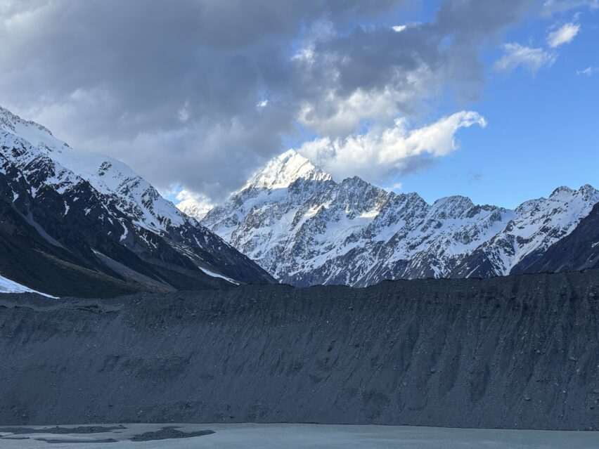 雲が流れたタイミングでマウントクックの姿もはっきりと見れました。